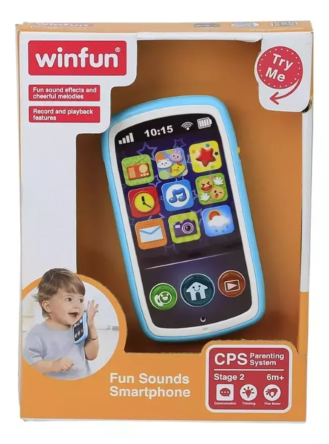 Smartphone para bebê com 3 botões luminosos, teclado de 9 teclas. Efeitos sonoros divertidos e alegres. Função de gravação e reprodução. Produzido com materiais atóxicos 100% inofensivo e seguro.